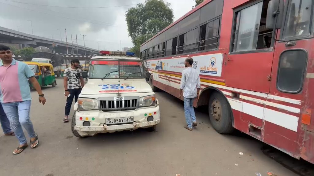 सूरत के सहारा दरवाजा गरनाला के पास एक बड़ा सड़क हादसा हुआ, जहां एक एसटी बस ने नियंत्रण खोते हुए पाँच बाइक सवारों को टक्कर मार दी।