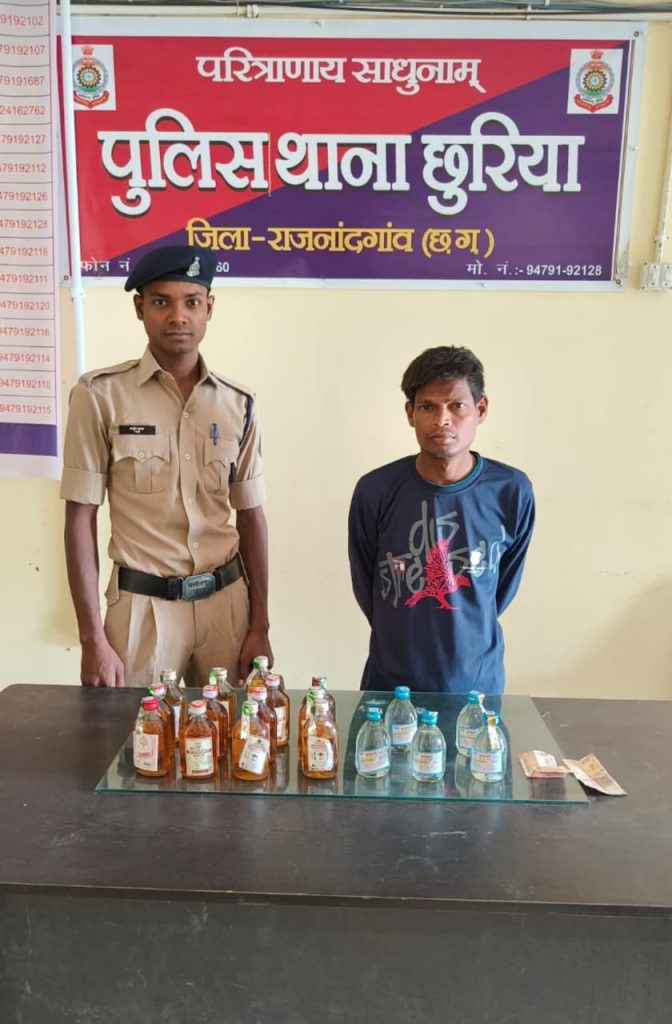 थाना छुरिया– दिनांक 04.11.2024 को पुलिस अधीक्षक राजनादगांव श्री मोहित गर्ग के निर्देश एवं अतिरिक्त पुलिस अधीक्षक श्री राहुल देव शर्मा तथा पुलिस अनु0 अधि0 डोंगरगढ़, श्री आशीष कुंजाम के मार्गदर्शन एवं थाना प्रभारी छुरिया के नेतृत्व में हमराह स्टाफ एवम, उ नि ओम साहू के थाना छुरिया क्षेत्र मे जुआ , शराब , आदि गतिविधियों पर लगातार निगरानी रखते हुये भ्रमण पर रवाना हुई थी कि दिनांक 04.11.2024 को अवैध शराब बिक्री की मुखबीर सूचना पर ग्राम बरेठटोला पुल के पास पुलिस टीम द्वारा नाकाबंदी की कार्यवाही की गई आरोपी राकेश निर्मलकर पिता गणेश राम उम्र 35 साल साकिन ग्राम नागरकोहरा चौकी चिचोला को 18 पौवा अवैध शराब कीमती 2140/रूपये एवं बिक्री रकम 210/रूपये के साथ पकड़े जाने पर जप्त कर आबकारी एक्ट की धारा – 34(1) के तहत कार्यवाही कर थाना छुरिया में अपराध कायम कर विवेचना मे लिया गया । उक्त कार्यवाही में निरीक्षक संतोष कुमार भुआर्य उप निरीक्षक ओम साहू आरक्षक 160,460,1445 एवं अन्य थाना स्टाफ का सराहनीय योगदान रहा।