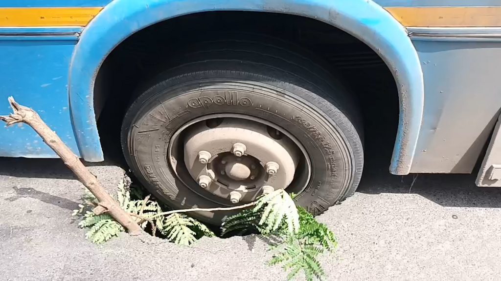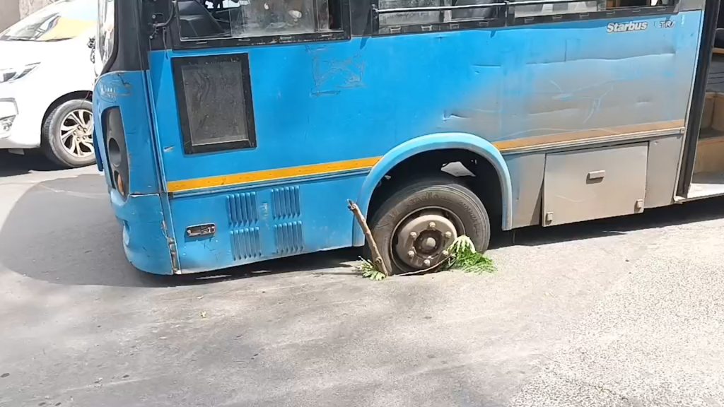 • जैसे ही सड़क पर भुंवां पड़ा, वहां से गुजर रही सिटी बस का टायर उसमें फंस गया।