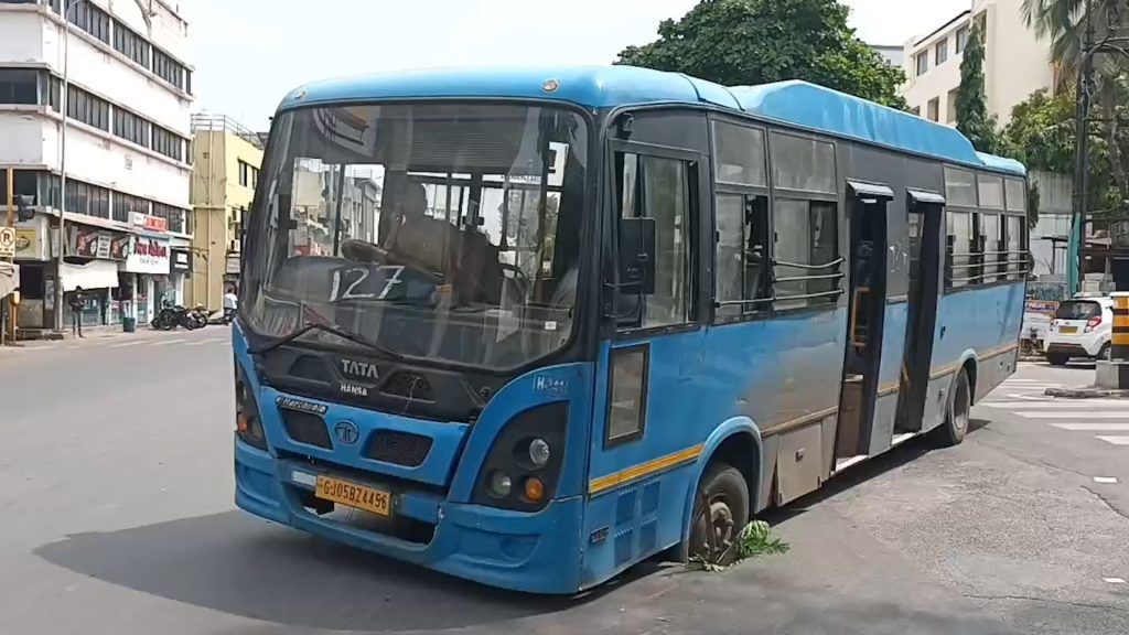 सूरत के अडाजन इलाके में बड़ा हादसा टल गया, जब मुख्य सड़क पर अचानक भुंवां (गड्ढा) पड़ गया और उसमें सिटी बस का एक टायर फंस गया।