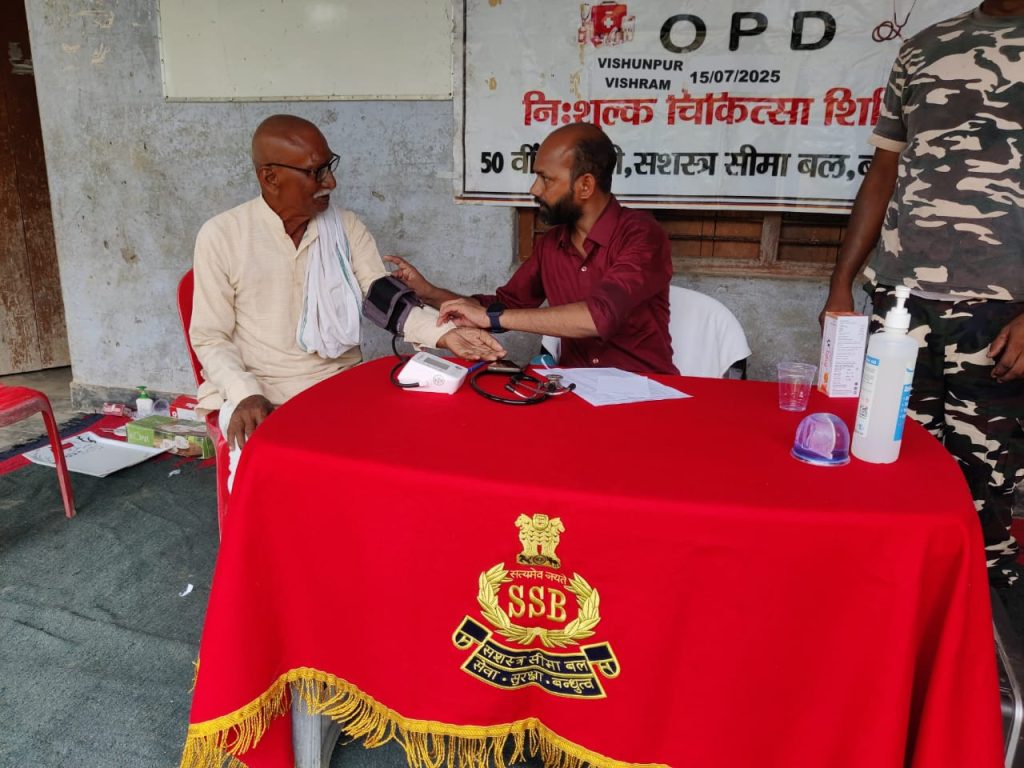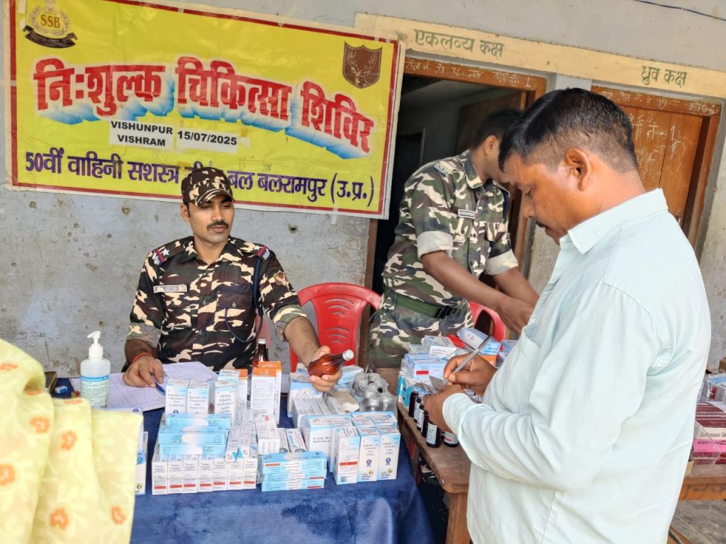 उक्त कार्यक्रम 50 वीं वाहिनी स.सी.ब बलरामपुर के बी समवाय डिउहरवा के बिशुनपुर विश्राम गांव में डॉ आर के सिद्धार्थ चिकित्सा अधिकारी , सामुदायिक स्वास्थ्य केंद्र पचपेड़वा के उपस्थिति में निःशुल्क मानव चिकित्सा शिविर का आयोजन किया गया, जिसमें पुरुष 35, महिला 21 एवं बच्चे 12 सहित कुल 68 सीमावर्ती लोगों का निःशुल्क जाँच किया गया एवं दवाइयों का वितरण किया गया।