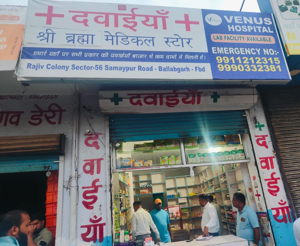 फरीदाबाद मुख्यमंत्री उड़न दस्ता फरीदाबाद को गुप्त सूचना प्राप्त हुई थी कि श्री ब्रह्मा मेडिकल स्टोर राजीव कॉलोनी सेक्टर 56 समय पुर रोड बल्लभगढ़ द्वारा अवैध रूप से मेडिकल स्टोर खोला हुआ है तथा अवैध रूप से अंग्रेजी दवाइयां व एमटीपी किट बेची जा रही है। यदि संबंधित विभाग के अधिकारियों को साथ लेकर रेड की जाए तो अवैध MTP Kit व मेडिकल स्टोर का भंडाफोड़ हो सकता है।