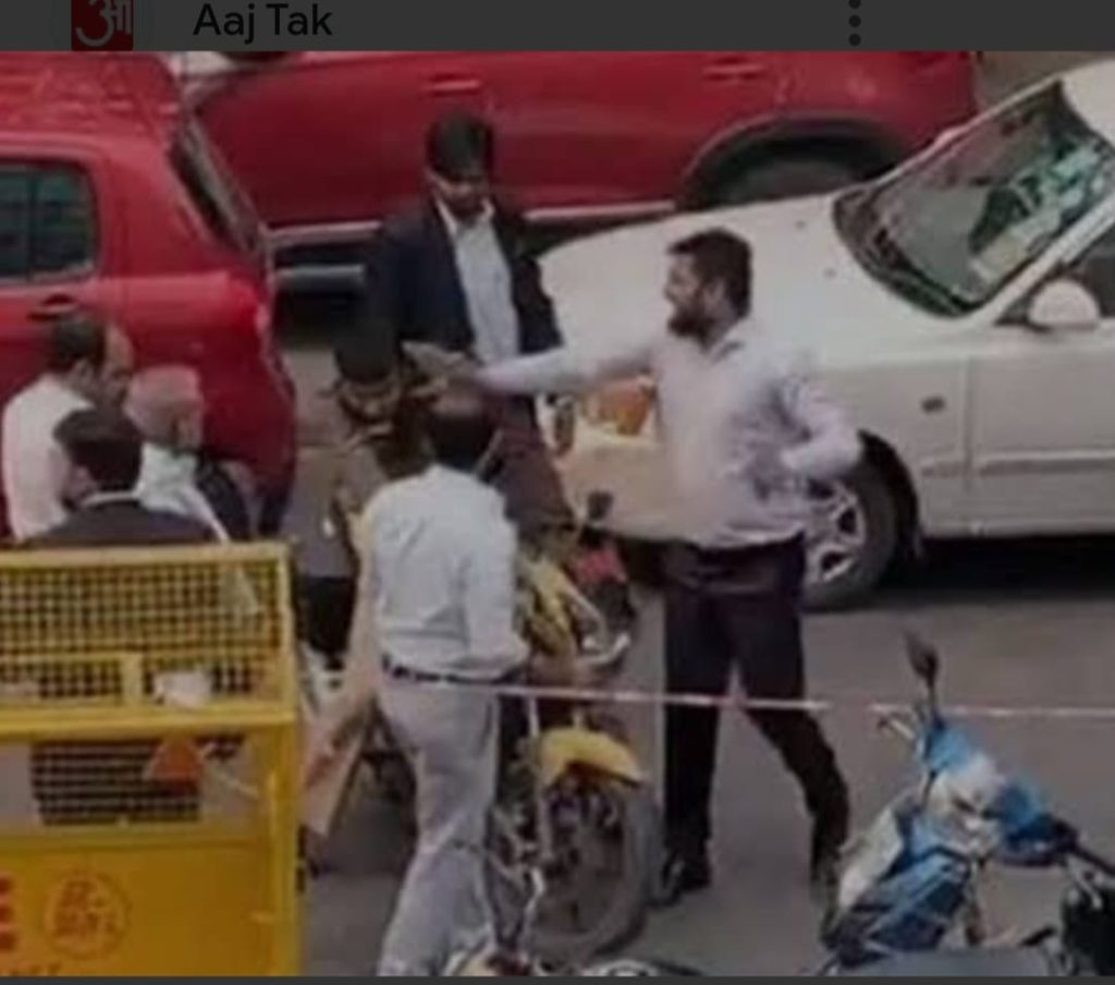 दिल्ली साकेत कोर्ट गुरुवार को एक पुलिसकर्मी की वकीलों ने मिलकर मार-पीट कर दी पुलिस कर्मी सनलाइट थाने मे तैनात बताया जा रहा है वह एक मामले मे सुनवाई के लिए वह कोर्ट पहुंचा था पीड़ित ने पीसीआर काॅल करके मदद की गुहार लगाई वहीं मौके पर पहुंची पुलिस पीड़ित को साकेत थाने ले आई मामला महकमे से जुड़ा होने पर पुलिस के उच्चाधिकारी भी मौके पर पहुंचे घटना को लेकर पीड़ित के बयान दर्ज कराए जा रहे है हालांकि पीड़ित ने मामले को लेकर फोन पर कुछ भी कहने से इन्कार किया है पुलिस के मुताबिक दोपहर 14’53 बजे साकेत थाने मे पीसीआर काॅल आईं कि साकेत कोर्ट नंबर 508 के बाहर पुलिसकर्मी के साथ वकीलों ने मार-पीट की है पीड़ित दीपक सराय काले खां चौंकी मे तैनात है दोपहर में साकेत कोर्ट में रुम नंबर 508 मे सुनवाई के लिए पहुंचा था