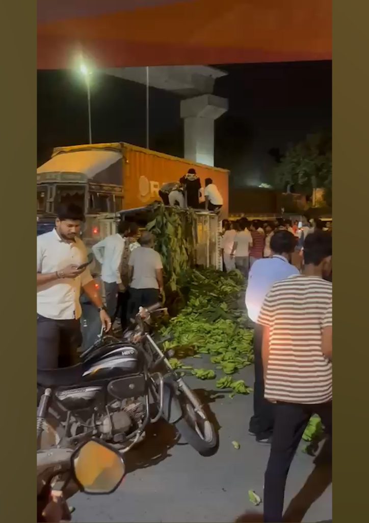 प्रत्यक्षदर्शियों के अनुसार ट्रक का ड्राइवर नियंत्रण खो बैठा और ट्रक अचानक पलट गया। गनीमत रही कि इस हादसे में कोई जानहानि नहीं हुई, लेकिन ट्रक और उसमें लदे फलों को भारी नुकसान पहुंचा है। शुरुआती अनुमान के मुताबिक हजारों रुपये का माल बर्बाद हो गया।