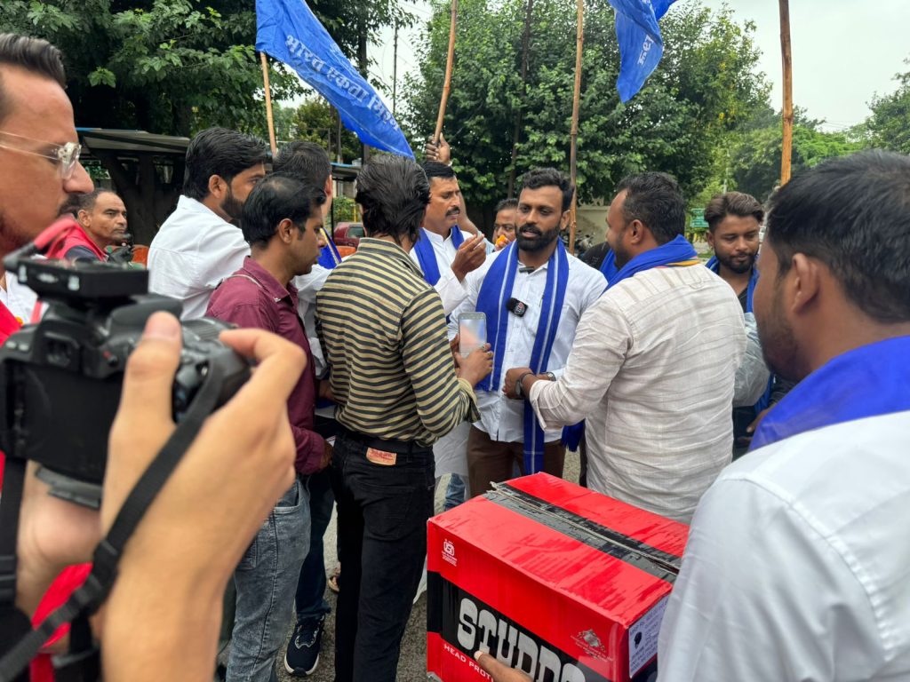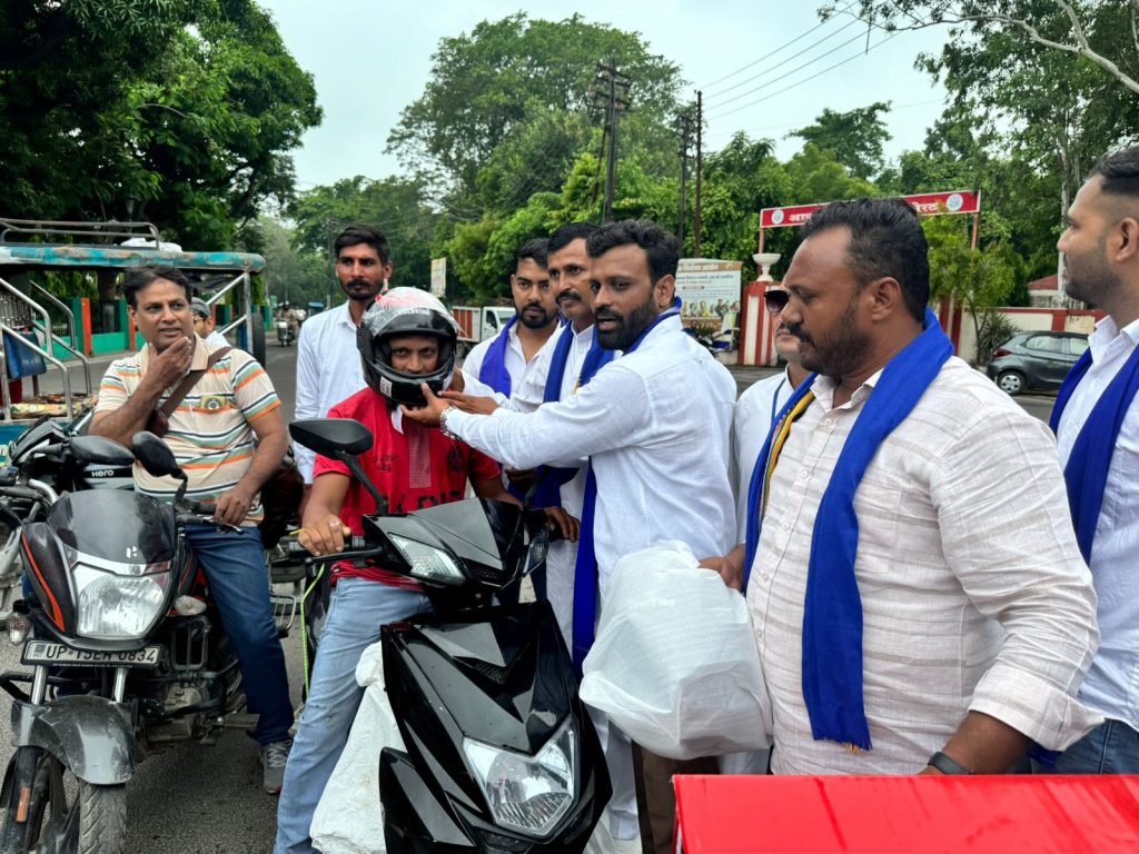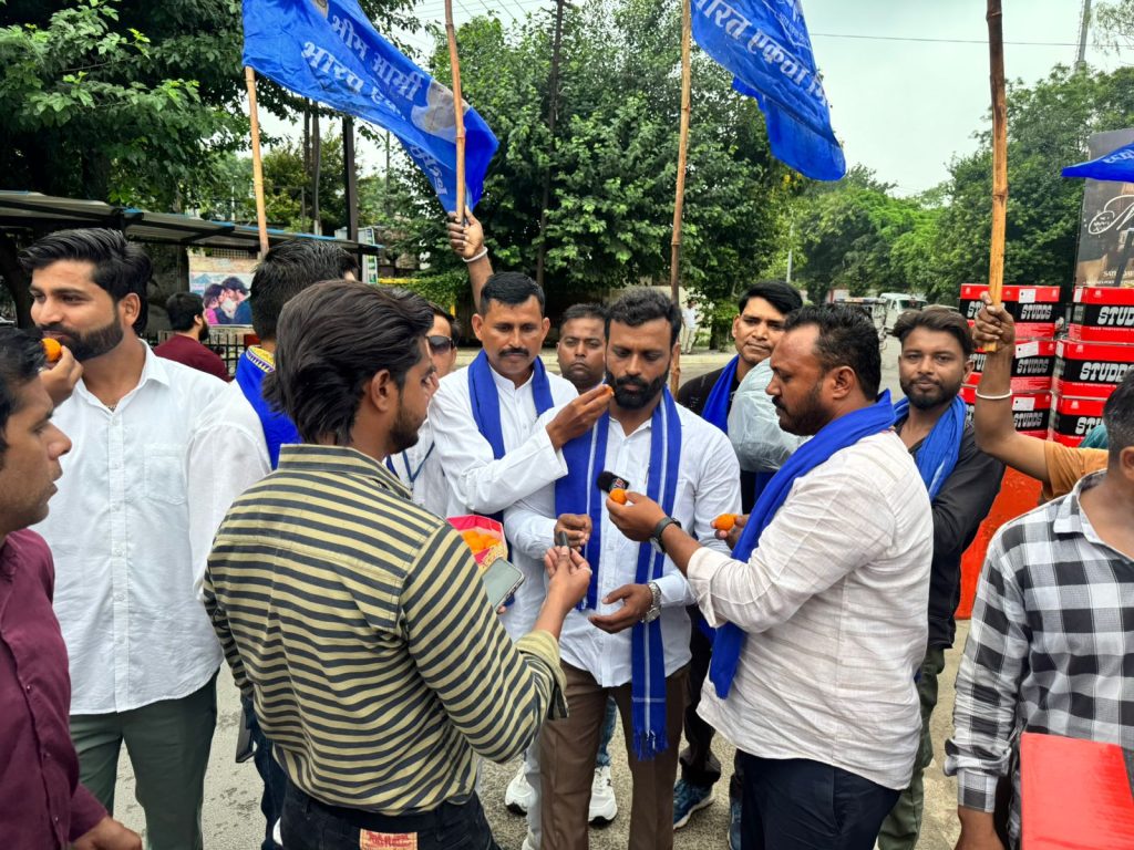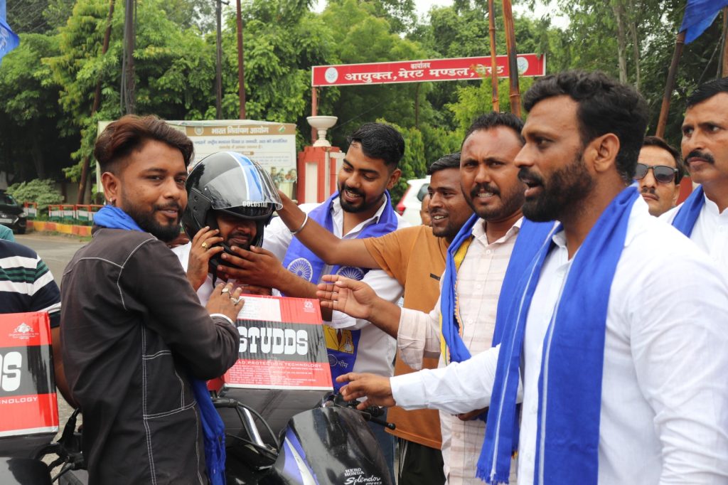 आज दिनांक 21/7/25 को जिला भीम आर्मी मेरठ के तत्ववाधान में भीम आर्मी भारत एकता मिशन का 10 वां स्थापना दिवस मेरठ कमिश्नरी चौक पर बड़े ही हर्षोल्लास के साथ मनाया गया। स्थापना दिवस के उपलक्ष में भीम आर्मी जिला अध्यक्ष मेरठ, बिजेंद्र सूद एवं महानगर अध्यक्ष गौतम भैया व उनकी टीम के द्वारा यातायात नियमों का पालन एवं सुरक्षा संदेश देते हुए बिना हेलमेट के चलने वाले दो पहिया वाहन चालकों को हेलमेट वितरण व लड्डू खिलाकर की स्थापना दिवस मनाया मुख्य रुप से उपस्थित रहे जिला प्रवक्ता रवि नागवंशी जी, महानगर प्रभारी चतर सिंह जाटव,जिला संगठन मंत्री मनमोहन सिंह, जिला उपाध्यक्ष निक्की जाटव, जिला उपाध्यक्ष आकाश निम्मी, महानगर महासचिव सूर्यकान्त बौद्ध,ब्लॉक अध्यक्ष कपिल सतवाई, विकास कुमार एडवोकेट, राहुल महलका, करण कुमार, राणा सिंह, मोनू भीड़वाल, राहुल चन्द्र, कुलदीप सराय काजी आदि लोग उपस्थित रहे
