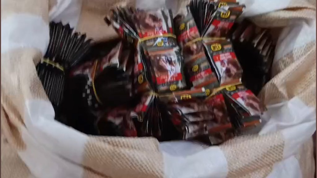 पुलिस ने 0.65 ग्राम की 15,100 पुड़िया बागबान तंबाकू, 10 किलो के 6 बैग लूज़ तंबाकू, 1 किलो खुला तंबाकू, 1.75 किलो रोल, 3 प्लास्टिक रोल, 1 इलेक्ट्रॉनिक कांटा, ALPHA CONTROLS SYSTEMS की मशीन और 5 सांचे बरामद किए।