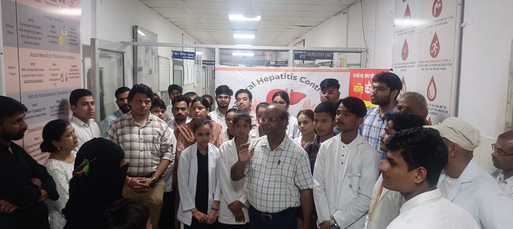 डॉ. तरुण और डॉ. सुमित (मेडिकल ऑफिसर), मेडिसिन, प्रसूति एवं पैथोलॉजी विभाग के रेजिडेंट डॉक्टर, लैब टेक्नीशियन और पैरामेडिकल स्टाफ ने लोगों को हेपेटाइटिस जांच व बचाव की जानकारी दी।