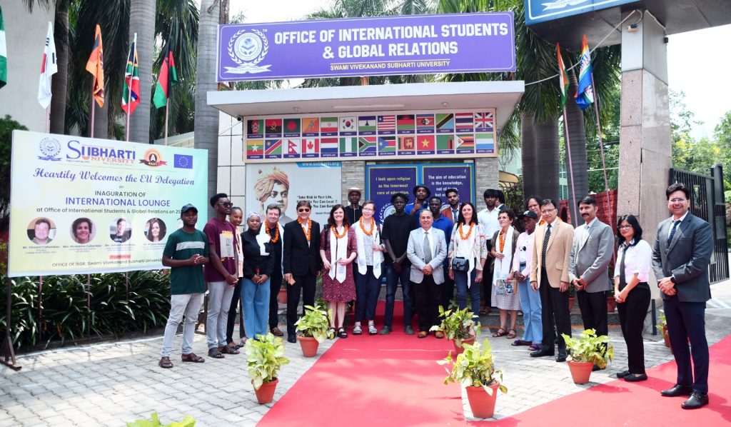 सुभारती विश्वविद्यालय के कुलपति प्रो. प्रमोद कुमार शर्मा ने बताया कि विश्वविद्यालय में 26 विभिन्न देशों के छात्र अध्ययनरत है। विश्वविद्यालय विदेशी छात्रों को विश्व स्तरीय सुविधाओं के साथ गुणवत्ता युक्त शिक्षा प्रदान कर रहा हैै। इसी दिशा में इंटरनेशनल स्टूडेंट्स के सहयोग और उनके समुचित मार्गदर्शन हेतु इंटरनेशनल लाउंज का भव्य उद्घाटन किया गया है। इस पहल का उद्देश्य विदेशी छात्रों को एक समर्पित स्थान प्रदान करना है, जहाँ वे शैक्षणिक, सांस्कृतिक और प्रशासनिक सहायता प्राप्त कर सकें। लाउंज द्वारा इंटरनेशनल इंटरंशिप, प्लेस्मेंट, इंडस्ट्री विजिट, समर कैंप करने का मौका मिलेगा। विदेशी विश्वविद्यालयों के साथ मिलकर विधार्थियों के हित में प्रमुखता से कार्य किये जाएंगे।