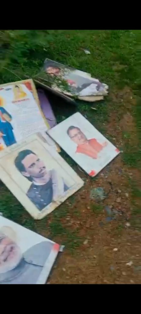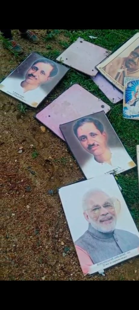 मुंगेली जिला के लोरमी विधानसभा क्षेत्र अंतर्गत ग्राम पंचायत साल्हेघोरी में कई महापुरुषों के साथ भारत के वर्तमान प्रधानमंत्री नरेन्द्र मोदी और छत्तीसगढ़ के विधानसभा अध्यक्ष रमनसिंह के छायाचित्र को रोड़ किनारे अज्ञात व्यक्ति द्वारा फेंकने का मामला सामने आया है। फेंके गए चित्रों में पंडित दीनदयाल उपाध्याय के कई छाया चित्र हैं। बाबा साहब अंबेडकर का चित्र भी जमीन पर फेंका गया है। माना जा रहा है कि बीजेपी से जुड़े हुए किसी नेता के घर अथवा किसी प्राथमिक विद्यालय में य़ह सभी तस्वीरें लगी रही होंगी। छायाचित्र फेंके जाने की घटना के बाद स्थानीय लोगों में चर्चाओं का बाजार गर्म है। लोग कई तरह की बाते कर रहे हैं।