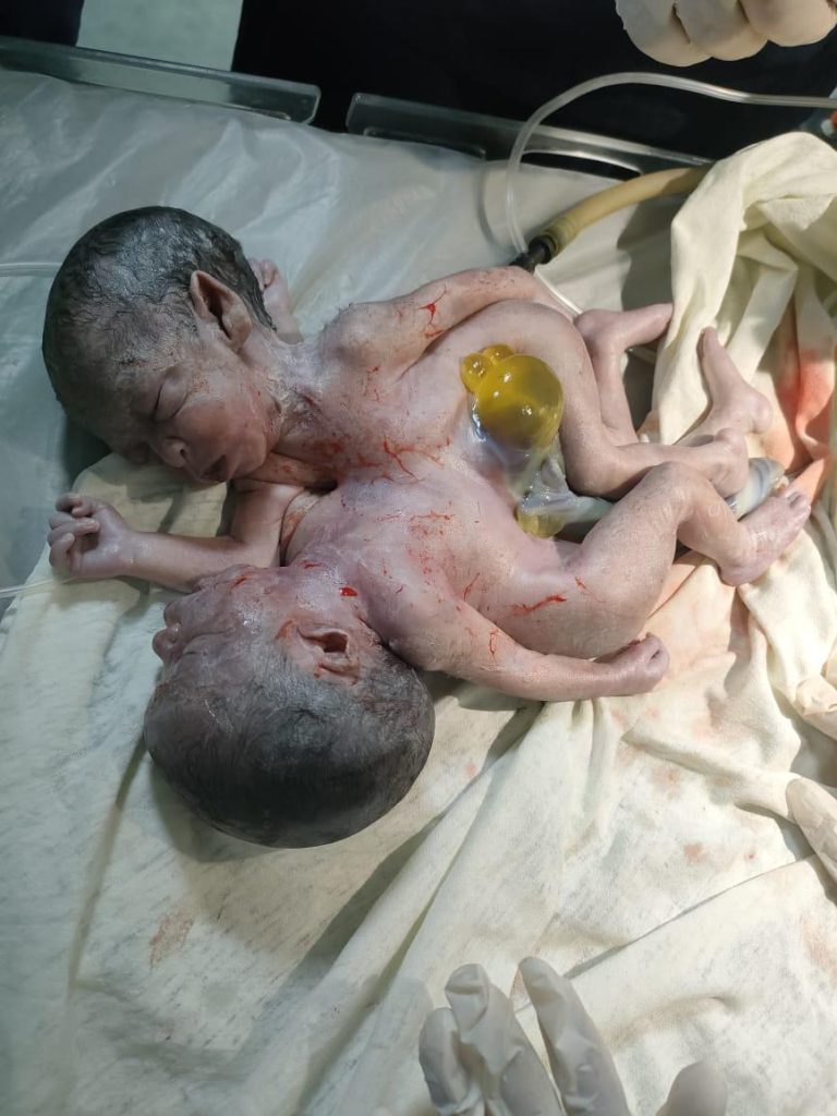 ऑपरेशन में 2 किलोग्राम संयुक्त भार के समयपूर्व (Preterm) दो नवजात शिशुओं का जन्म हुआ, जिनका वक्ष एवं उदर संयुक्त था, जैसा कि अल्ट्रासाउंड में पूर्वानुमानित था।