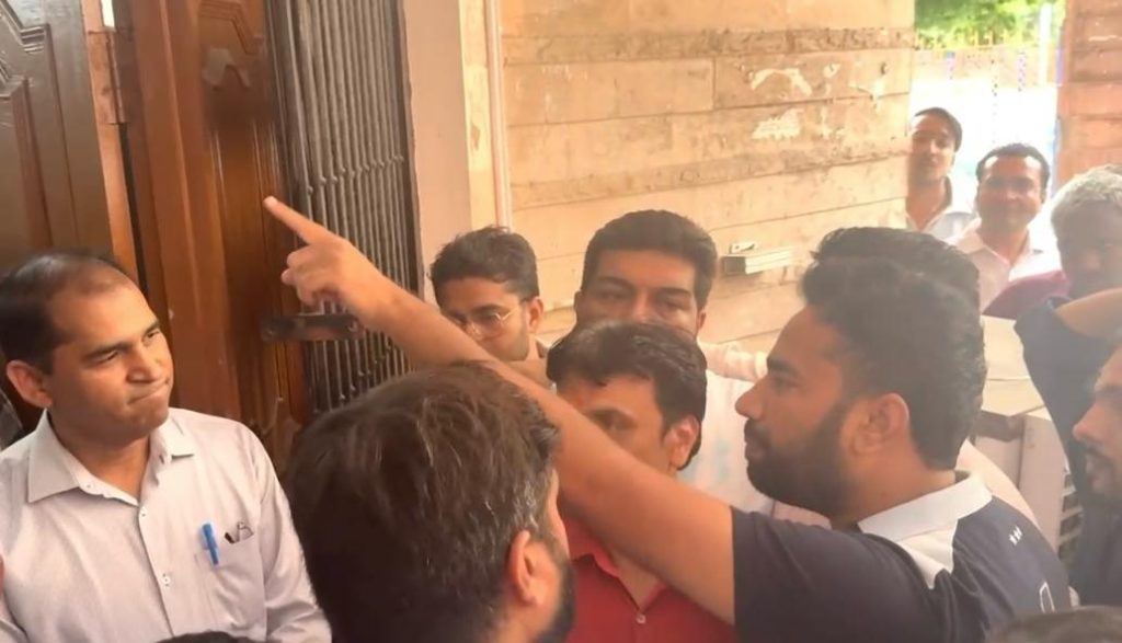 आज इस मामले में छात्र नेता विनीत चपराणा ने विश्वविद्यालय परिसर में जोरदार प्रदर्शन किया। हंगामे के बीच माहौल इतना गर्म हुआ कि **रजिस्ट्रार, परीक्षा नियंत्रक और विश्वविद्यालय के कई वरिष्ठ अधिकारी गोपनीय विभाग पर पहुंचे ।