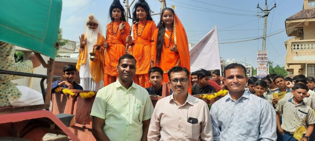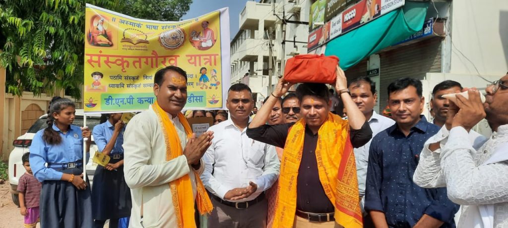 वीओ – इसी पहल के तहत, बनासकांठा संस्कृत शिक्षा परिवार द्वारा डीसा अर्बुदा विद्यालय से सरदार बाग़ तक जिला स्तरीय ‘संस्कृत गौरव यात्रा’ का आयोजन किया गया। इस यात्रा में जिला शिक्षा अधिकारी डॉ. हितेश पटेल उपस्थित रहे और उन्होंने चारों वेदों की पूजा-अर्चना के बाद शंख ध्वनि के साथ गौरव यात्रा का शुभारंभ किया। इस ‘संस्कृत गौरव यात्रा’ में यज्ञ सेवा-वैदिक संस्कृति का प्रदर्शन प्रतिकृतियों सहित झांकियों के माध्यम से किया गया। विद्यार्थियों ने भी राम-लक्ष्मण-जानकी, नारदमुनि, अर्जुन, श्रीकृष्ण जैसे पौराणिक पात्रों का वेश धारण कर भारतीय संस्कृति के चरित्रों का चित्रण किया।
