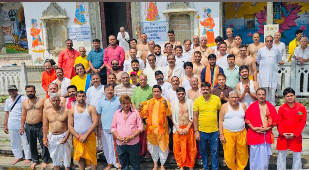 विप्र फाउंडेशन (जोन-1A) उदयपुर के तत्वाधान में रक्षाबंधन के शुभ अवसर पर जनेऊधारी ब्राह्मणों के लिए आवश्यक श्रावणी उपाकर्म संस्कार, दश विध स्नान एवं हिमाद्री संकल्प देव ऋषि पितृ तर्पण पूजन (पुरानी जनेऊ उतारकर नई जनेऊ धारण करना) कार्यक्रम मांजी के मंदिर, चांदपोल पर 9 अगस्त 2025 शनिवार प्रातः 8:00 से 10:00 बजे तक पूरे विधि-विधान से संपन्न कराया गय।
