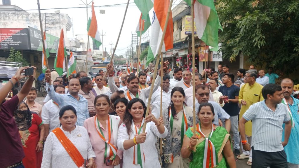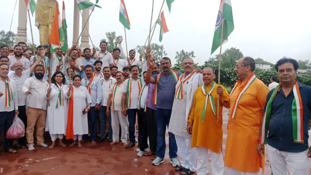 भारतीय जनता पार्टी के निर्देशानुसार हरघरतिरंगा अभियान के अन्तर्गत आज भारतीय जनता पार्टी,मेरठ महानगर के फूलबाग मंडल की तिरंगा यात्रा निकली गई सूरजकुंड पार्क में स्वामी विवेकानंद जी की मूर्ति पर माला अर्पण कर तिरंगायात्रा का शुभारंभ किया यात्रा का समापन नौचंदी मैदान में लगी भारत माता की मूर्ति एवं बाबा भीमराव अंबेडकर जी की मूर्ति पर माला अर्पणकर कार्यक्रम का समापन किया गया जिसमें मुख्य अतिथि रहे महानगर उपाध्यक्ष रवीश अग्रवाल जी महानगर मंत्री विवेक बाजपेई मंडल प्रभारी सुशील गुर्जर जी मंडल अध्यक्ष नरेश गुप्ता जी पश्चिम क्षेत्र मीडिया प्रभारी गजेंद्र शर्मा जी के नेतृत्व में निकाली गई।
