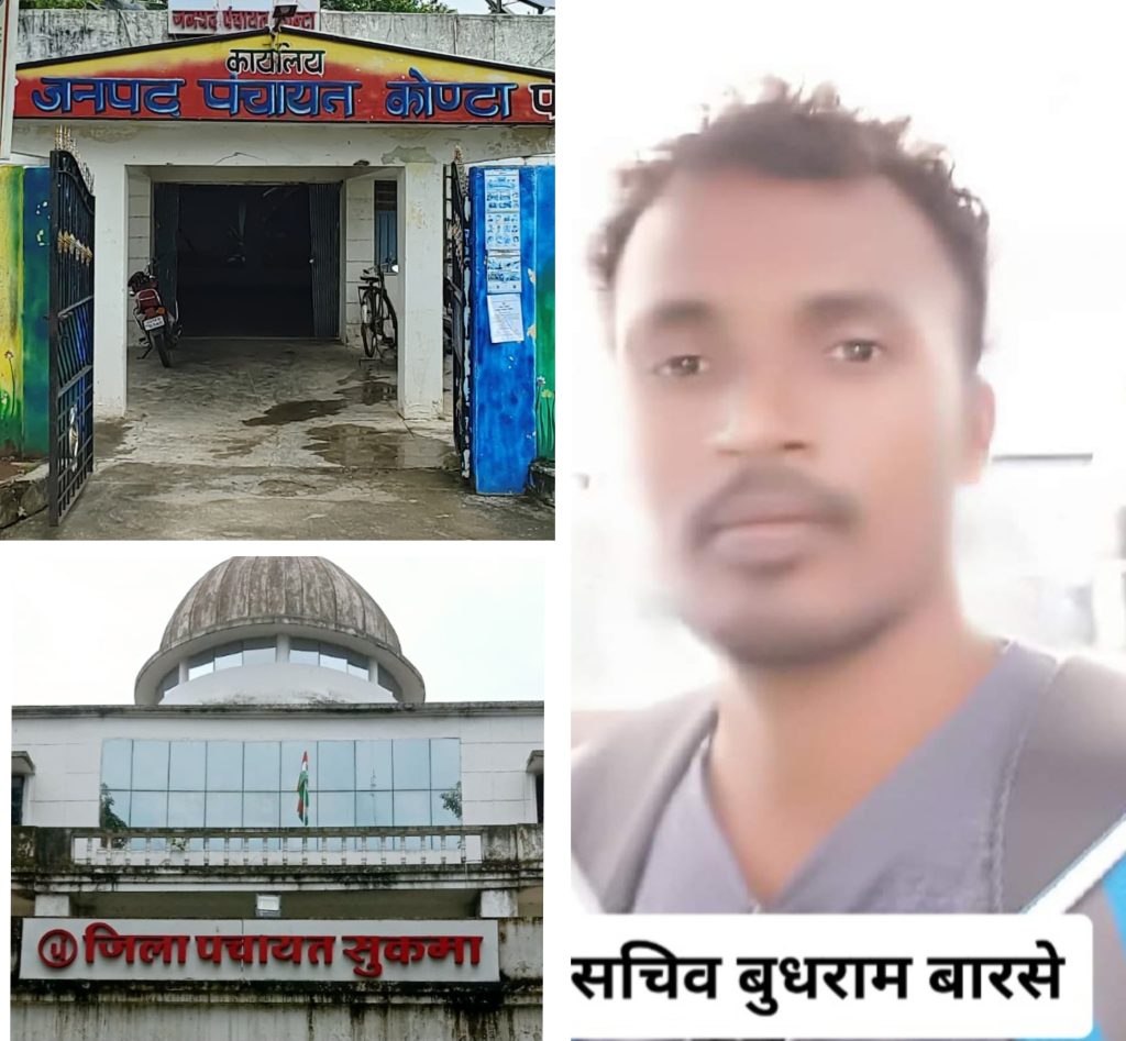 एक आदिवासी होकर, आदिवासियों के हित में मिलने वाले राशि को लूटने वाले ग्राम पंचायत गुमोड़ी सचिव बुधराम बारसे को जिला प्रशासन ने किया निलंबित। ग्रामीणों ने जिला प्रशासन का किया आभार व्यक्त।प्रदेश के पहले ऐसे सचिव हैं जो ग्राम पंचायत गुमोड़ी में स्कूल भवन तो नही बनाये है लेकिन भवन मरम्मत के नाम से राशि निकाल लिया। सचिव बुधराम बारसे अपने पद के बचाव के लिए चारो ओर से जोर लगाए, लेकिन उनकी हार और सच्चाई की जीत हुई।अभी पिक्चर बाकी है,,,जिले के तीनों ब्लॉक, सुकमा, कोंटा और छिंदगढ़ के कई सचिवों ने कुछ अधिकारीयों से मिलकर सिर्फ कागजों में काम कर भ्रष्टाचार को अंजाम दिया है। ग्रामीण क्षेत्रों में विकास के लिए केंद्र एवं राज्य शासन की कई महत्वांकाँक्षी योजनाओं में घोर लापरवाही कर अपना जेब गरम किया है। और आदिवासियों को रोजगार मिलने वाली केंद्र सरकार की अमृत सरोवर योजना तालाब निर्माण में करोड़ों रुपयों का जो भ्रष्टाचार किए है अब उनकी बारी है।