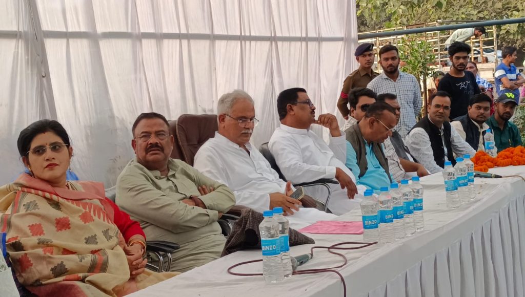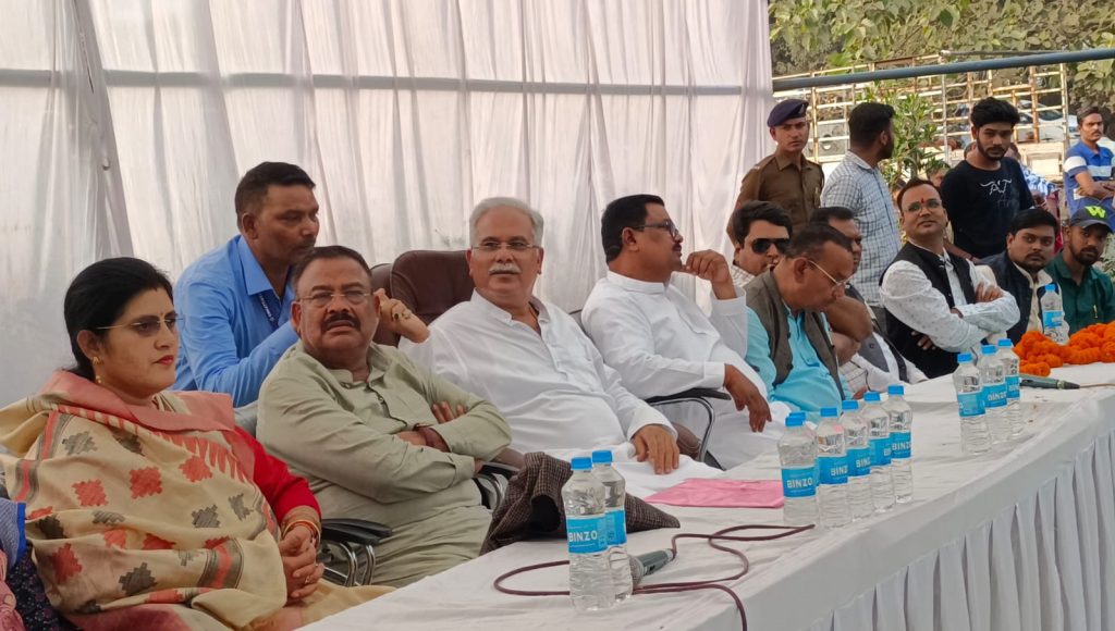 पूर्व मुख्यमंत्री भूपेश बघेल आज एक दिवसीय दौरे पर राजनांदगांव विकासखंड के ग्राम पंचायत टेढ़ेसरा साकरा एवं धीरी पहुंचे थे जहां उन्होंने करोड़ों रुपए की लागत से निर्मित सामुदायिक भवन निर्माण त्रिमूर्ति मंदिर वार्ड नंबर 6 एवं 7 में मंच में सेट निर्माण कार्य व्यावसायिक परिषद निर्माण निकटा तालाब में पचरी निर्माण गौठान में आजीविका मिशन सेट निर्माण शासकीय नवीन शाला में आहता जीर्णोद्धार शीतला मंदिर जीर्णोद्धार पशु आश्रम सुरक्षा कार्य सत्य कबीर पंथ श्री हुजूर प्रकाशमुनि साहेब कुटी सामुदायिक भवन निर्माण अटल आवास में सांस्कृतिक मंच निर्माण पंचायत के सामने मंच में सेट निर्माण डाक देव तालाब में निर्मला घाट निर्माण कार्य सहित साकरा में किसान कुटीर निर्माण कार्य का लोकार्पण कर जनता को समर्पित किया और घिरी में राधे चरण साव सामुदायिक भवन का भी लोकार्पण किया ग्राम पंचायत टेढेसर में आयोजित लोकार्पण समारोह में पूर्व मुख्यमंत्री भूपेश बघेल ने सर्वप्रथम परंपरागत रूप से सत्य कबीर पंथ हुजूर प्रकाशमुनि साहेब कबीर के चित्र के समक्ष दीप प्रज्वलित कर माल्यार्पण कर एवं पूजा अर्चना कर समारोह का शुभारंभ किया तत्पश्चात सरपंचों एवं जिला कांग्रेस कमेटी के अध्यक्ष भागवत साहू के द्वारा आयोजन के मुख्य अतिथि कर रहे पूर्व मुख्यमंत्री भूपेश बघेल समारोह के अध्यक्षता कर रहे डोंगरगांव विधायक डलेश्वर साहू विशिष्ट अतिथि के रूप में अपनी गरिमा में उपस्थिति प्रदान कर रहे थे भोलाराम साहू विधायक खुद जी श्रीमती हर्षिता बघेल विधायक डोंगरगढ़ भागवत साहू अध्यक्ष जिला साहू संघ राजनांदगांव अंगेश्वर देशमुख प्रमोद साहू उपाध्यक्ष श्री सदगुरु कबीर धर्मगुरु दामाखेड़ा खिलेश्वरी साहू सभापति जनपद पंचायत राजनांदगांव नवाज खान पूर्व अध्यक्ष जिला सहकारी बैंक एवं महापौर श्रीमती हेमा देशमुख का पुष्प कुछ भेंटकर स्वागत किया इस स्वागत भाषण को संबोधित करते हुए जिला कांग्रेस कमेटी के अध्यक्ष भागवत साहू ने कहा कि तेरे सड़क के पूर्व मुख्यमंत्री भूपेश बघेल का विशेष इसने है भागवत साहू ने कहा कि आज जो टेडेसरा सड़क में विकास निर्माण कार्य हुए हैं वह सब पूर्व मुख्यमंत्री भूपेश बघेल सरकार के द्वारा जारी धनराशि से संभव हो पाया है और आज यह भी संयोग है कि उन्हीं के करकमलों से लोकार्पण किया जा रहा है।