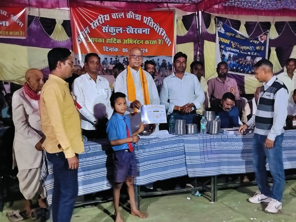 खैरागढ़ छुईखदान गंडई जिले के छुईखदान विकासखंड का जोन स्तरीय मिडिल व प्राथमिक स्कुल बालक बालिकाओ का खेलकूद प्रतियोगिता ग्राम खैरबना मे आयोजित हुआ इस आयोजन के अंतिम मे पुरुस्कार वितरण एवं समापन समरोह मे मुख्य अतिथि के रूप मे पूर्व संसदीय सचिव कोमल जंघेल शामिल होकर छात्र छात्राओं का उत्साहवर्धन किया एवं सम्बोधित किया। कार्यक्रम मे उनके साथ मंडल छुईखदान के भाजपा अध्यक्ष नेतराम जंघेल,मंडल भाजपा उपाध्यक्ष प्रकास जंघेल विशिष्ट अतिथि के रूप मे शामिल हुए. जोन स्तरीय प्रतियोगिता मे छुईखदान ब्लाक के लगभग 21 जोन के 155 स्कूल के विद्यार्थीयों ने खेल मे भाग लिया इस कार्यक्रम मे प्रमुख रूप से गैदा जंघेल, सरपंच ललित जंघेल दुष्यंतशर्मा स्त्रोतसमन्वयक,धनसाय साहू अध्यक्ष हाईस्कूल,धनेश साहू ग्राम पटेल, मधुसूदन देसलहरा प्रचार्य हाई स्कुल,मनहरण जंघेल, जलवंतीन जंघेल उपसरपंच, किरण जंघेल,दौलत पटेल,डोमार भेड़िया दादू,धनउ साहू सहित सभी स्कूलों के शिक्षक शिक्षिका, ग्राम वासी उपस्थित थे|