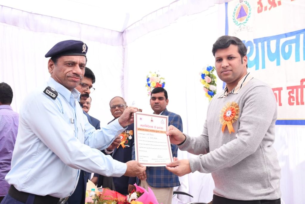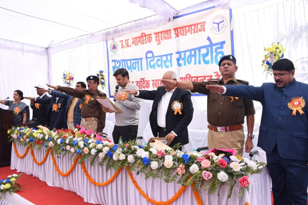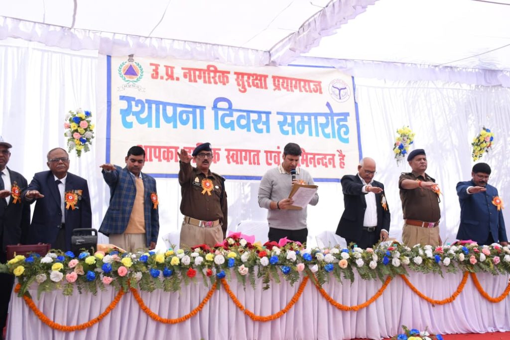 प्रयागराज,नागरिक सुरक्षा स्थापना दिवस के 62 वीं वर्षगांठ पर जिलाधिकारी/ कन्ट्रोलर रविन्द्र कुमार माँदड़ ने डीसीपी प्रोटोकाल पंकज कुमार, एडीएम सिटी मदन कुमार, सिटी मजिस्ट्रेट विनोद कुमार सिंह की उपस्थिति में ध्वजात्तोलन किया। तद्उपरान्त जिलाधिकारी महोदय के द्वारा नागरिक सुरक्षा की शपथ दिलाई गई। जिलाधिकारी ने महामहिम राष्ट्रपति, मा० प्रधानमन्त्री, मा० गृहमन्त्री एवं गृह सचिव महानिदेशक नागरिक सुरक्षा भारत सरकार से प्राप्त संदेशो का वाचन किया। उपनियन्त्रक नीरज मिश्रा द्वारा नागरिक सुरक्षा का परिचय, आपातकालीन सेवाओ के साथ स्थानीय वार्डेन द्वारा वर्ष भर निः काम सहयोग का विवरण प्रस्तुत किया। चीफ वार्डन अनिल कुमार डिप्टी चीफ सादिक हुसैन सिद्धिकी ने अतिथियों का स्वागत पुष्पगुच्छ व स्मृति चिन्ह देकर सम्मानित किया।